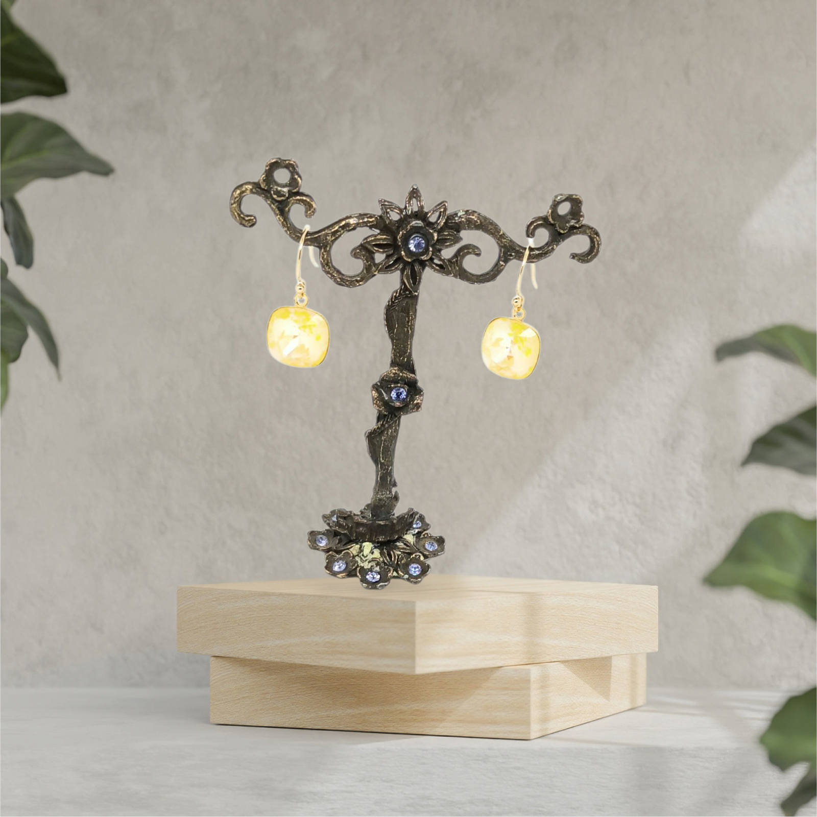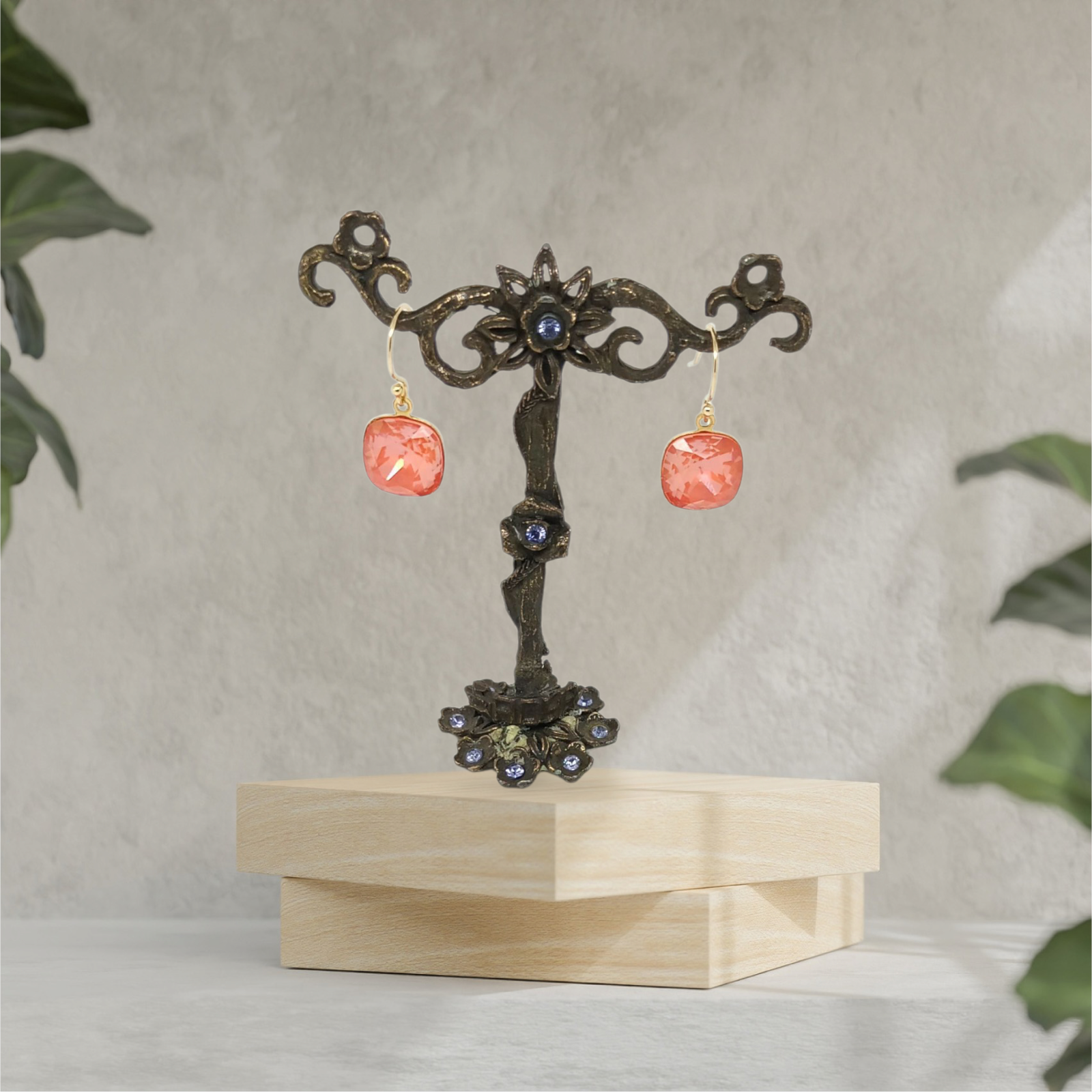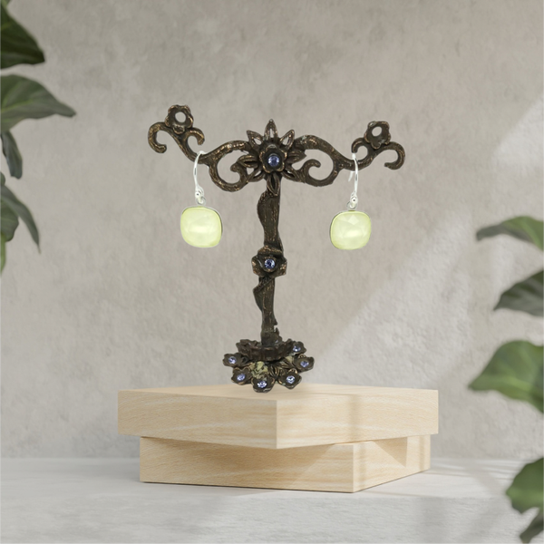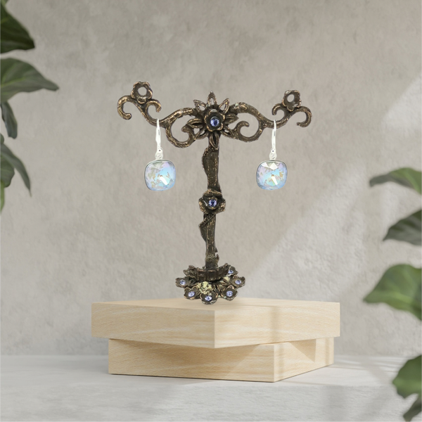 Boucles d'oreilles pendantes, cabochon cristal.